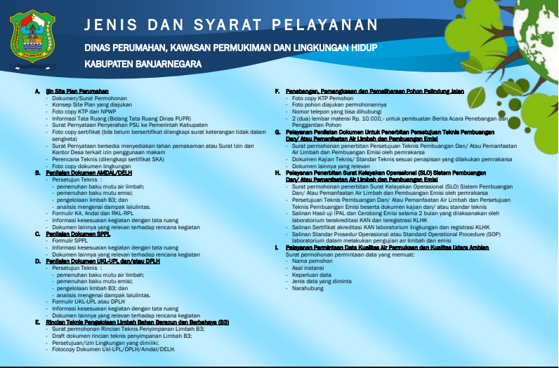 Jenis dan Syarat Pelayanan DPKPLH Kab. Banjarnegara